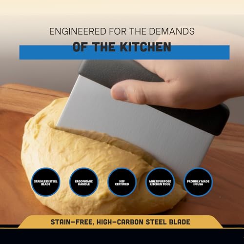 - تصميم الشفرة: الشفرة مقاس 6 انش × 3 انش مثالية لكشط العجين من الأسطح وقطع الأجزاء الأنيقة. تتميز بحافة رفيعة مشطوفة بعمق لسهولة إزالة العجين اللزج.