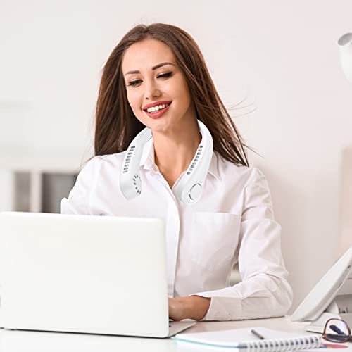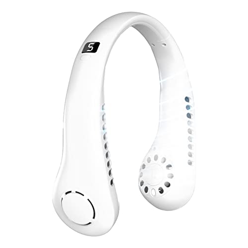 Deyaah - مروحة رقبة محمولة من دياه، 3000mAh بدون شفرات 360 درجة، شخصية قابلة لاعادة الشحن استخدام اليدين مع 5 سرعات للسفر والاماكن الخارجية والمنزل والمكتب والمدرسة والتخييم (ابيض)، 5.0 واط