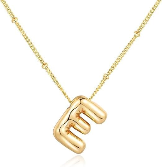 Generic - سلسلة من الفولاذ المقاوم للصدأ مطلية بالذهب الأصفر عيار 18 قيراط ومتوفرة بتصميم 26 حرف لامع بحجم كبير من A إلى Z على شكل بالون من دي اف (حرف E)