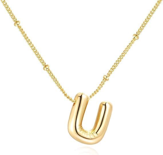 Generic - قلادة من الستانلس ستيل مطلية بالذهب الاصفر عيار 18 قيراط من دي اف مكونة من 26 حرفًا بتصميم بالون جديد لامع كبير الحجم من A-Z على شكل حرف U