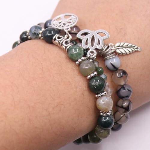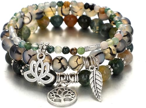 Generic - (دي اف) 3 قطع من اساور شجرة الحياة العلاجية لليوغا، مجموعة اساور شاكرا اللوتس متعددة الالوان من حجر ريكي، حجر كريستال طبيعي للتخلص من القلق، للنساء والرجال، 7 انش
