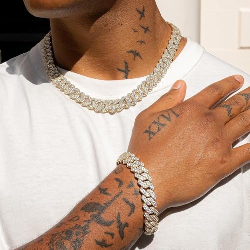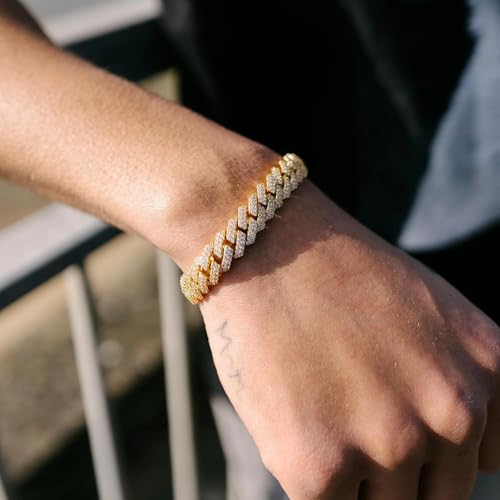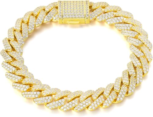 Generic - سوار (DF) للرجال والنساء 12 ملم مطلي بالذهب الابيض عيار 18 قيراط بلينغ دايموند هيب هوب رابر، مجوهرات سميكة لا تسبب الحساسية مع صندوق هدايا، 8.5 انش، زركونيا مكعب