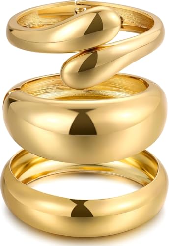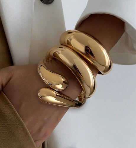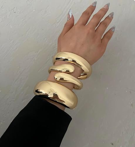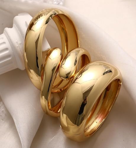 Generic - أساور دي اف ذهبية عريضة للنساء بتصميم رقيق وعصري ومطلية بالذهب عيار 14 - مجموعة كبيرة قابلة للارتداء معًا ومثالية كهدايا مجوهرات عصرية، مقاس متوسط، مصنوعة من المعدن، بدون أحجار كريمة