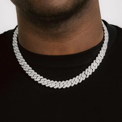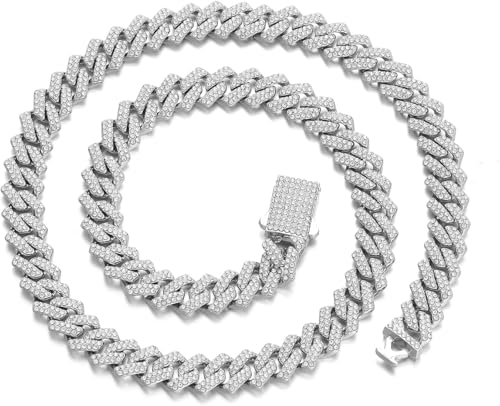 Generic - سلسلة بحلقات كوبية 10 ملم مطلية بالذهب والفضة والماس، مجوهرات ميامي بلينغ هيب هوب للرجال والنساء، 16 انش، زنك، زركونيا مكعب (دي اف)