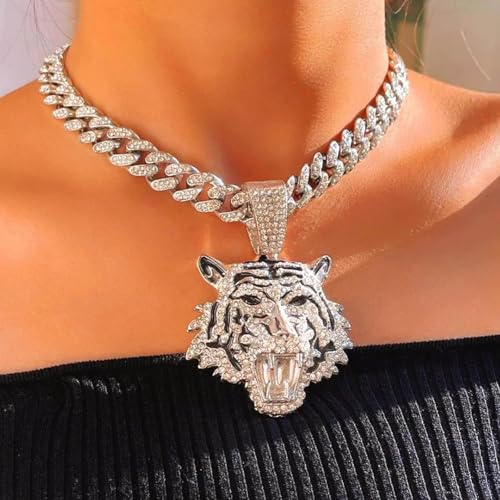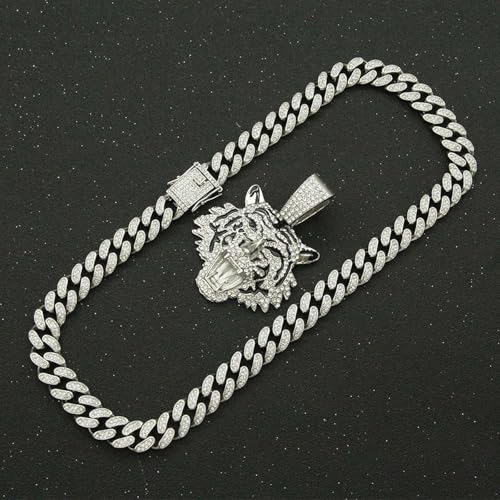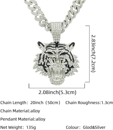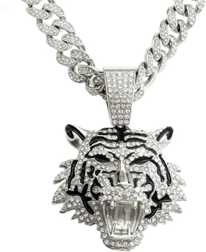 Generic - قلادة بقلادة كوبية (DF)، مجوهرات هيب هوب بدلاية على شكل حيوان للرجال والنساء، 20 انش (نمر ذهبي)
