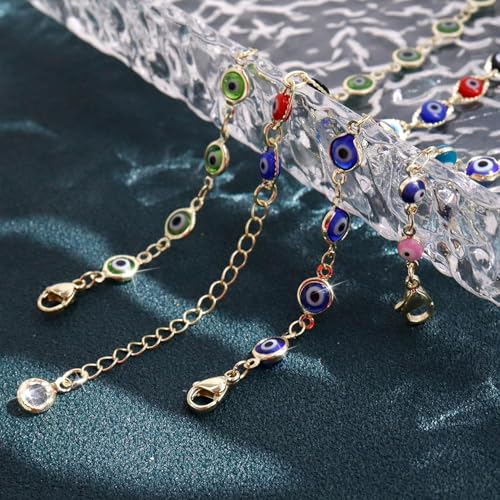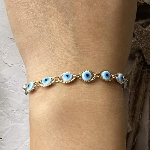 Generic - سوار عين الحسد للنساء من دي اف مطلي بالذهب عيار 14 قيراط، اساور سلسلة عين زرقاء للبنات، اخرى