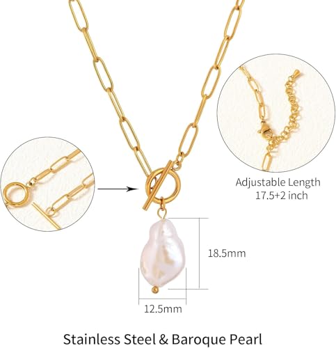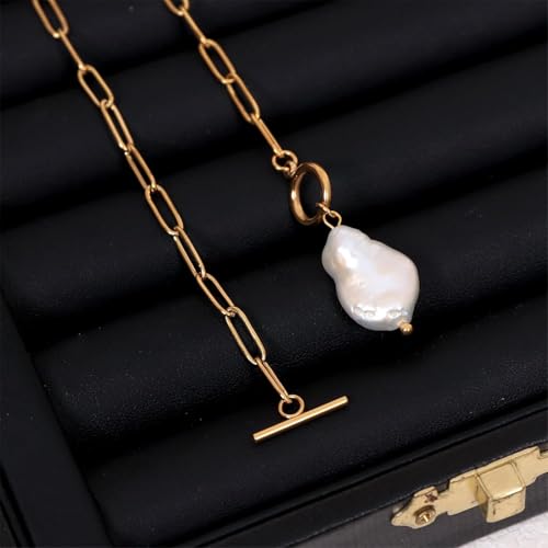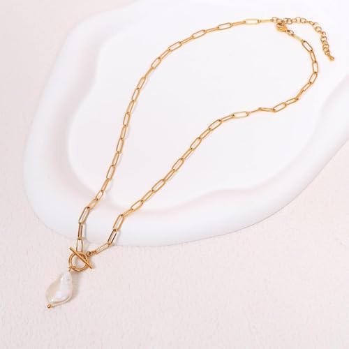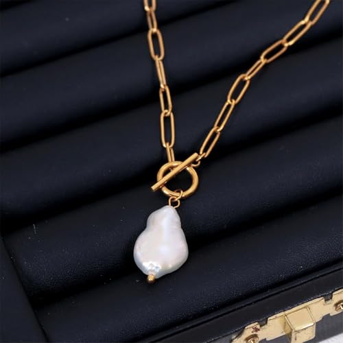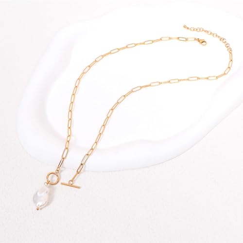 Generic - قلادة بدلاية من الاحجار الكريمة بمشبك ورق مطلية بالذهب عيار 18 قيراط من دي اف من حجر اللؤلؤ الطبيعي سلسلة حجر الميلاد مجوهرات مشبك ورق هدية عيد الحب للنساء، 18 انش، ستانلس ستيل