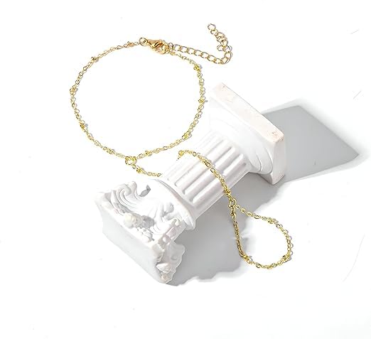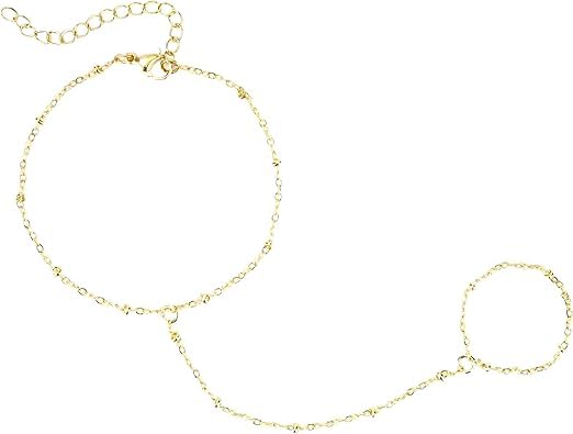 Generic - سوار سلسلة يد ذهبي عصري للنساء من دي اف - خاتم اصبع بسيط مطلي بالذهب عيار 14 قيراط مع قرص مخصص من A-Z، سلسلة بطبقات قابلة للتعديل، هدية مجوهرات للنساء