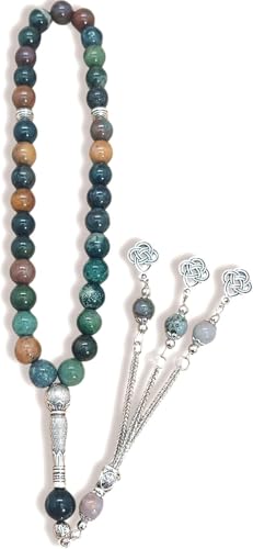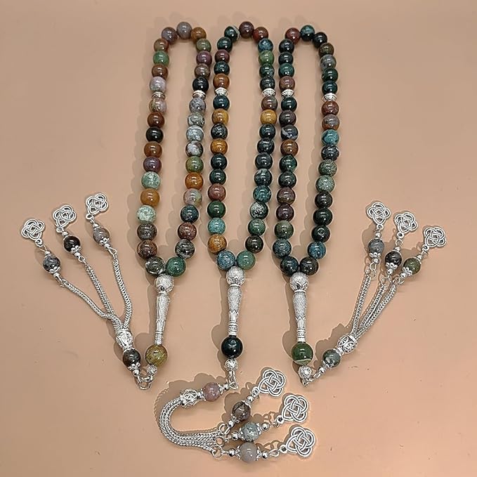 Generic - مسبحة صلاة اسلامية مكونة من 33 خرزة مع شراشيب طويلة، خرز صلاة من العقيق الهندي الطبيعي متعدد الالوان من دي اف