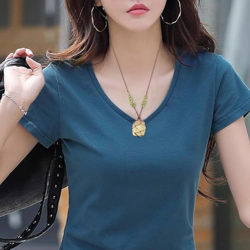 Generic - عقد بوهيمي مرصع بكريستال السترين الخام للنساء والرجال من دي اف، عقد سويتر شبكي منسوج من الاحجار الكريمة، عقد بوهو اصفر واخضر
