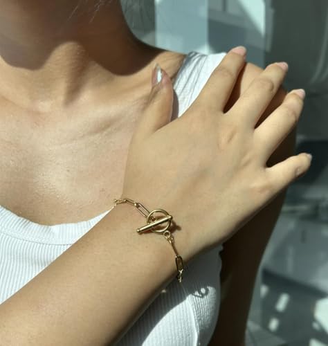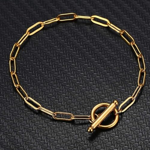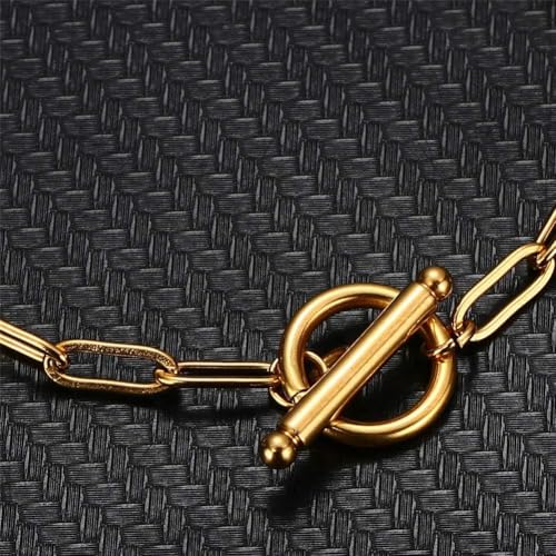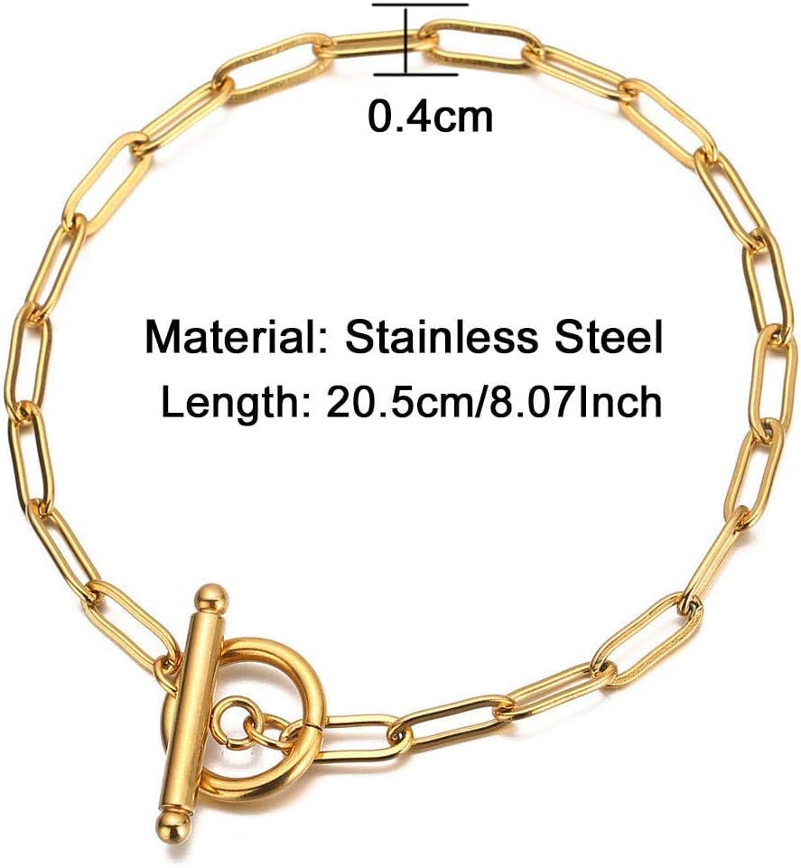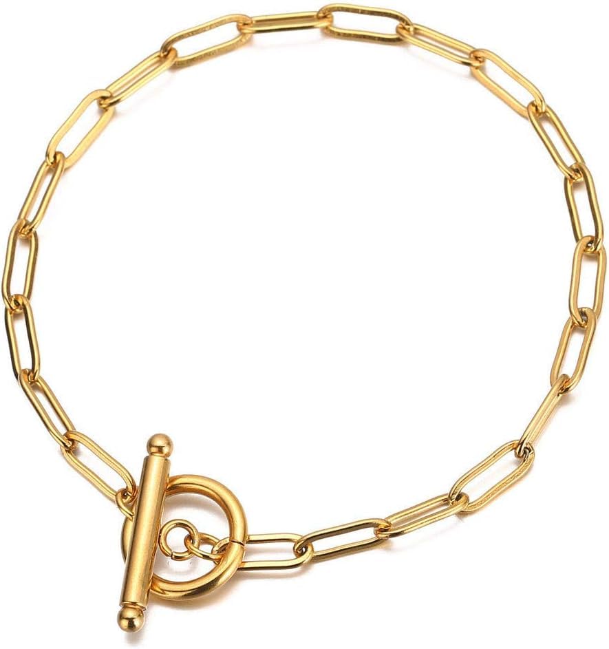 Generic - سوار سلسلة من الستانلس ستيل بمشبك اغلاق او تي للنساء من دي اف، مجوهرات بسيطة شائعة، 8.06 انش، معدن، بدون احجار كريمة