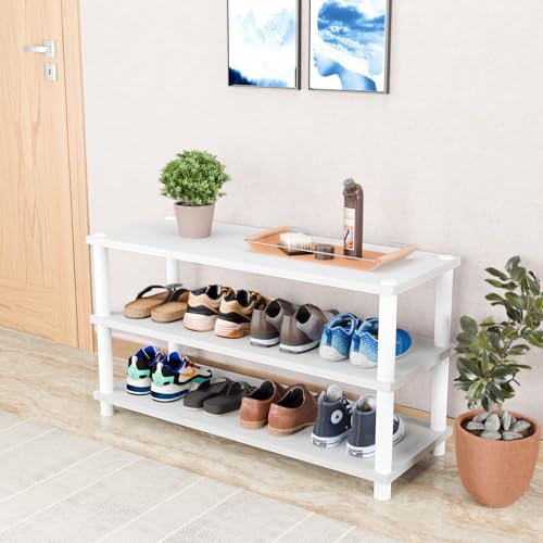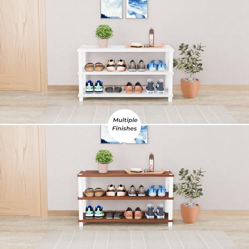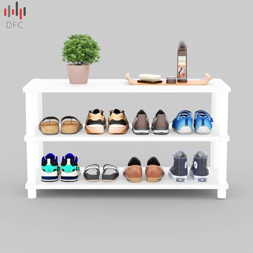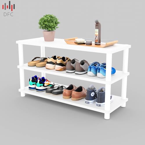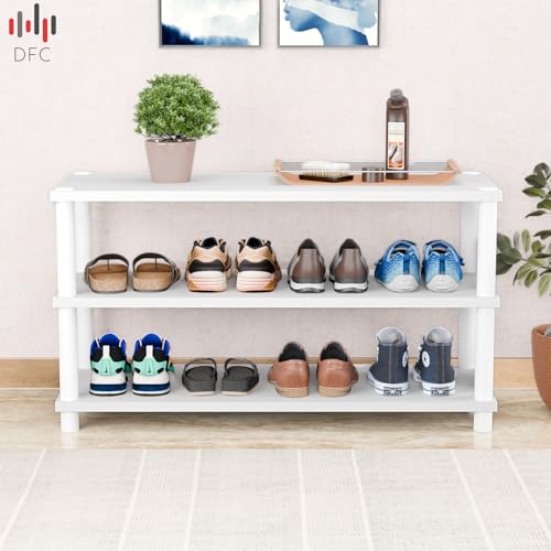 DFC - دي اف سي رف احذية مفتوح من الخشب الهندسي مع ارفف تخزين لغرفة المعيشة والمنزل والمكتب من خشب ام دي اف متعدد الاغراض من ايسون (ابيض)