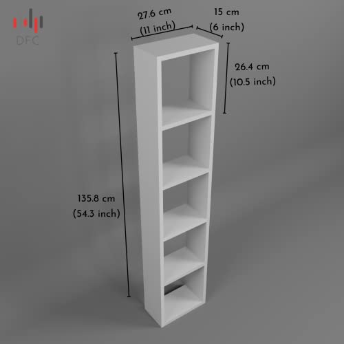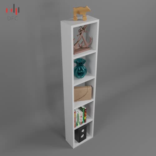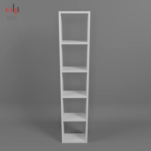 DFC - دي اف سي رف كتب من الخشب المضغوط بتصميم هندسي بريون لديكور المنزل وغرفة المعيشة خشب ليفي متوسط الكثافة لقاعة المكتب لمسة نهائية غير لامعة ابيض 5 ارفف .
