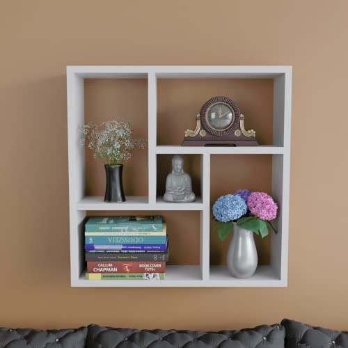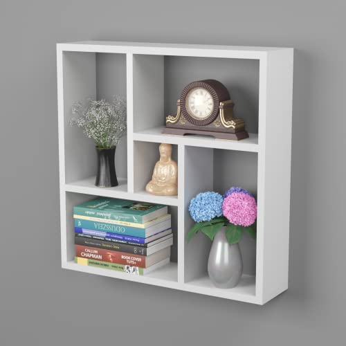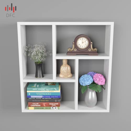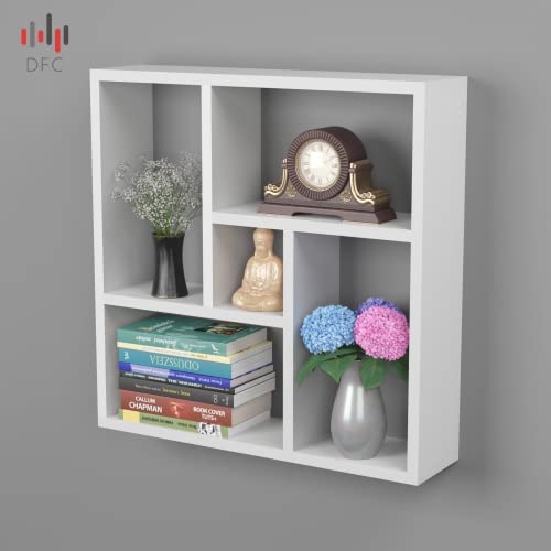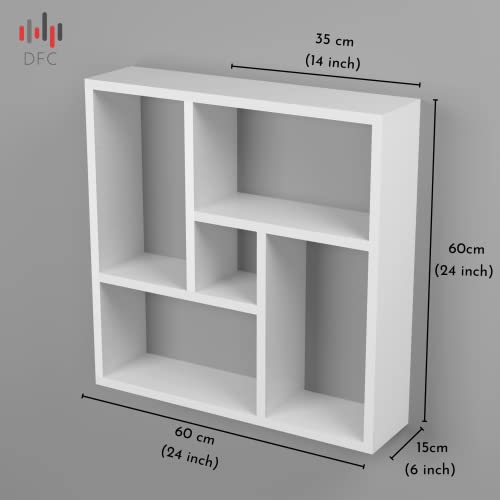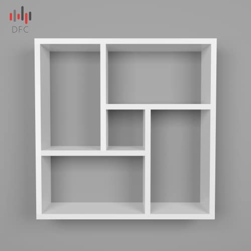 DFC - رف حائط خشبي هندسي من كريون لغرفة المعيشة كتب لديكور المنزل للتعليق على الحائط النوم عائم لمسة نهائية غير لامعة ابيض