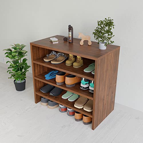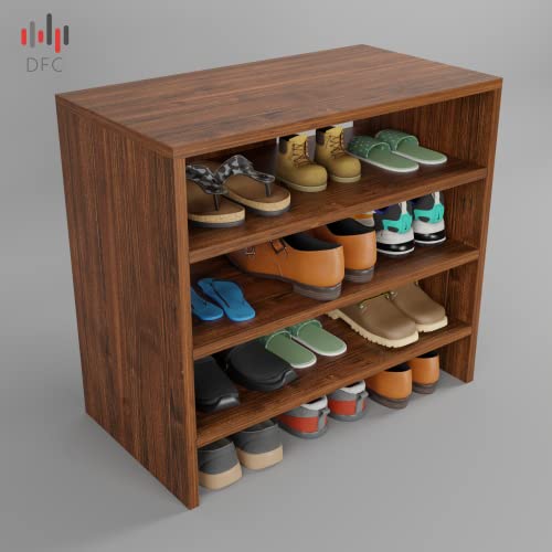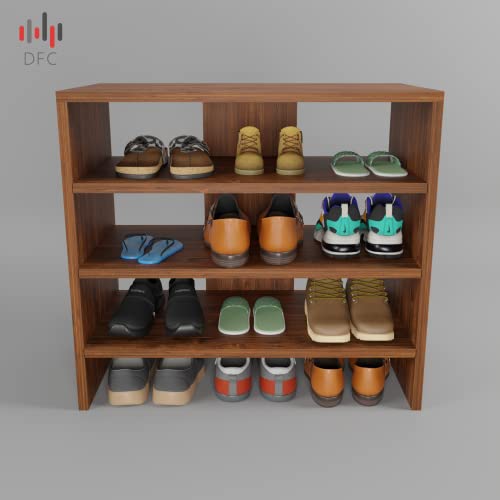 DFC - دي اف سي رف احذية مفتوح من خشب ام كاسبر مع ارفف تخزين 4 طبقات لغرفة المعيشة والمنزل والمكتب - البلوط بني
