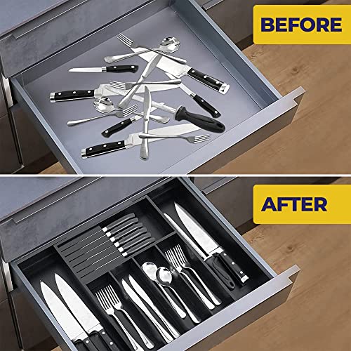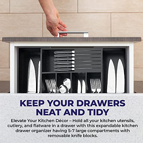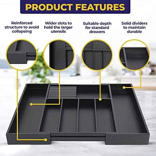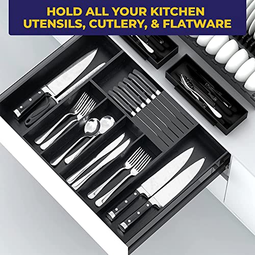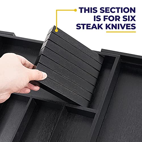 DFW Consumables - دي اف دبليو كونسيمابلز - مورد جديد: منظم ادراج من خشب الخيزران الفضيات المطبخ مع فواصل وكتل سكاكين قابلة للإزالة. - 12.75-22 × 17 2 انش اسود .