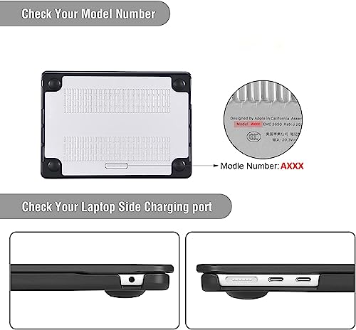 - 【التوافق】 تم تصميم الحافظة لتكون متوافقة مع ماك بوك برو 13 انش (موديل M1 A2338/A2289/A2251، إصدار 2022-2018). يرجى التحقق من رقم الموديل "Axxxx" في الجزء السفلي من اللاب توب قبل الشراء.