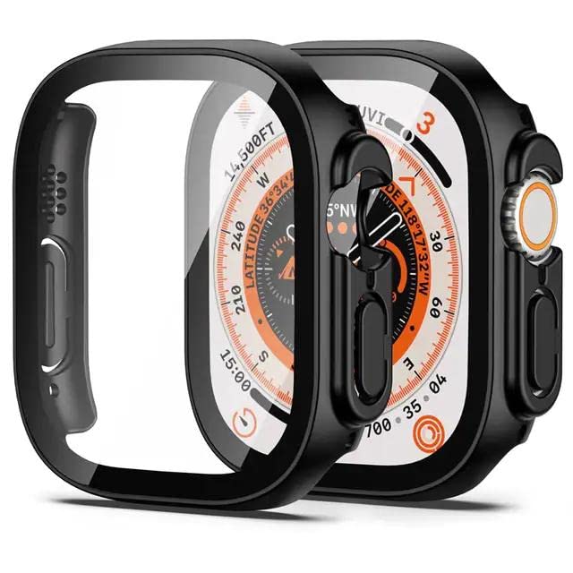 Dhavals shoppe - جراب حماية كاملة مضاد للخدش مع زجاج مقوى مدمج، شاشة حماية 49 ملم، جراب صلب ممتص للصدمات متوافق مع ساعة ابل سلسلة 8 الترا من دافالز شوبي (اسود)