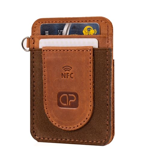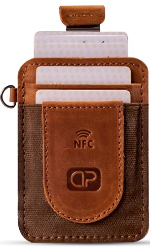 Dipelle - حامل بطاقات من الجلد الاصلي بتصميم بسيط ورفيع من دي بيل مع جيب امامي مرن وعروة سحب سريعة - يحمل ما يصل الى 12 بطاقة - بطاقة عمل رقمية ان اف سي مدمجة (هافان، مع شريحة ان اف سي)