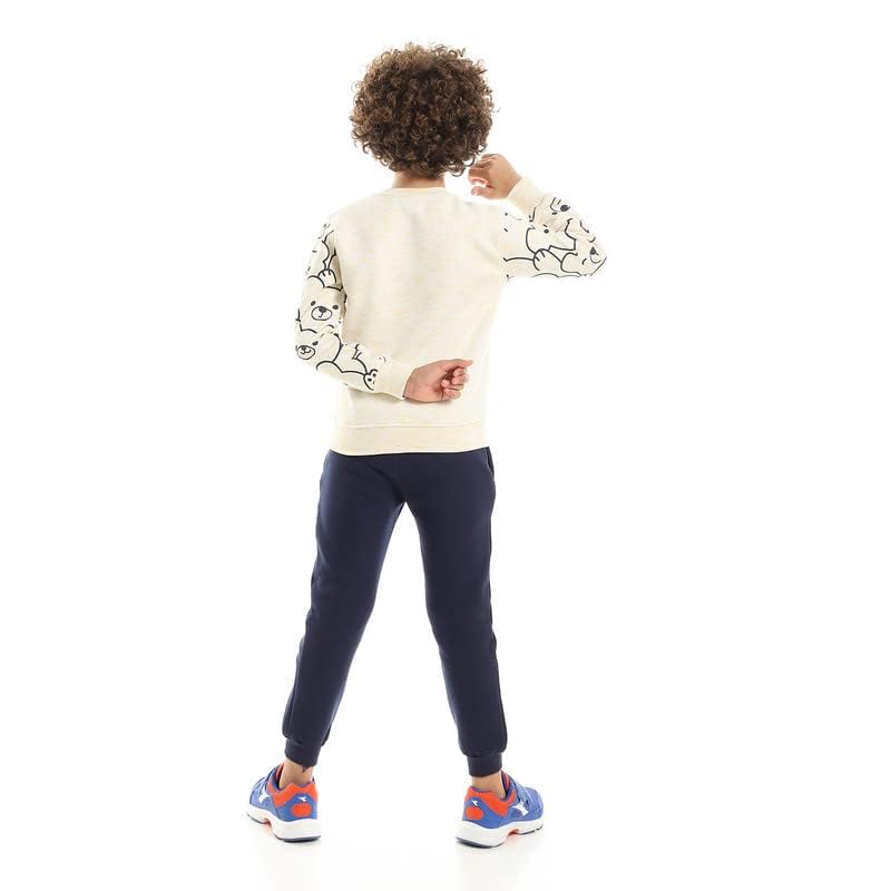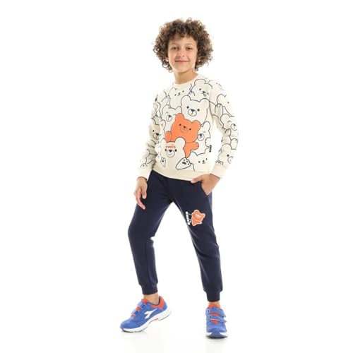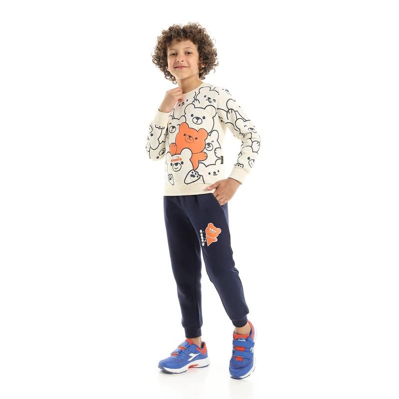 Diadora - طقم قطن مطبوع للاطفال من عمر 5-6 سنوات، كحلي/ برتقالي