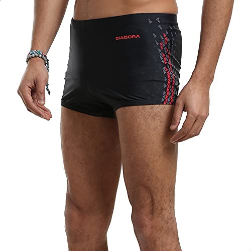 Diadora - شورت سباحة ضيق بأستك وطبعة شعار للرجال من ديادورا - اسود، XL، نايلون