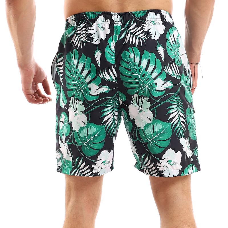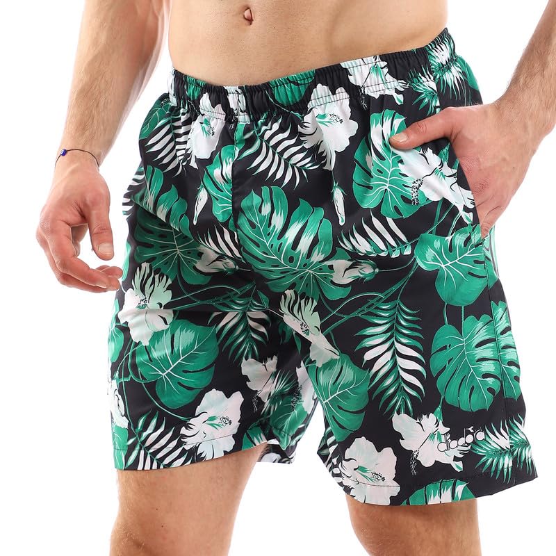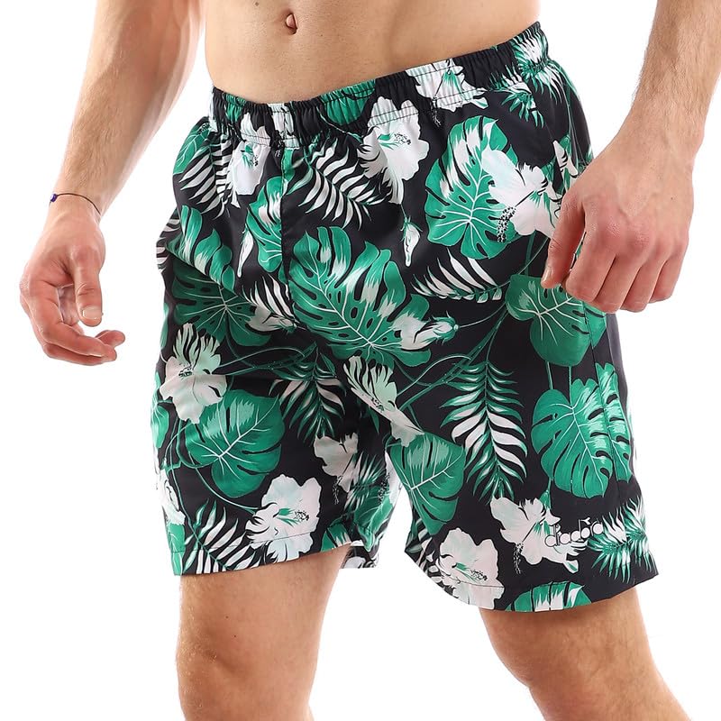 Diadora - شورت سباحة للرجال من ديادورا، مقاس XL، لون أخضر/ مزين بزهور، موديل 222163007، البوليستر