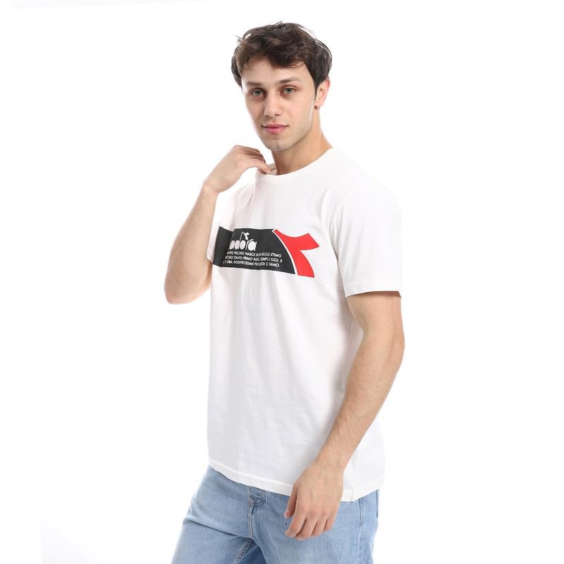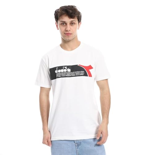 Diadora - تيشرت قطن مطبوع للرجال مقاس M بلون اوف وايت 224033