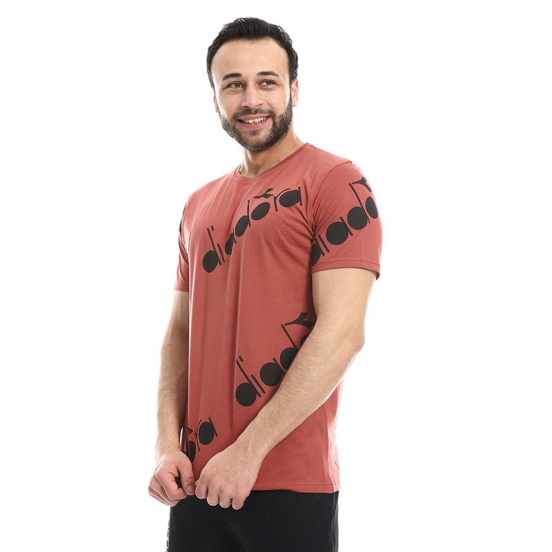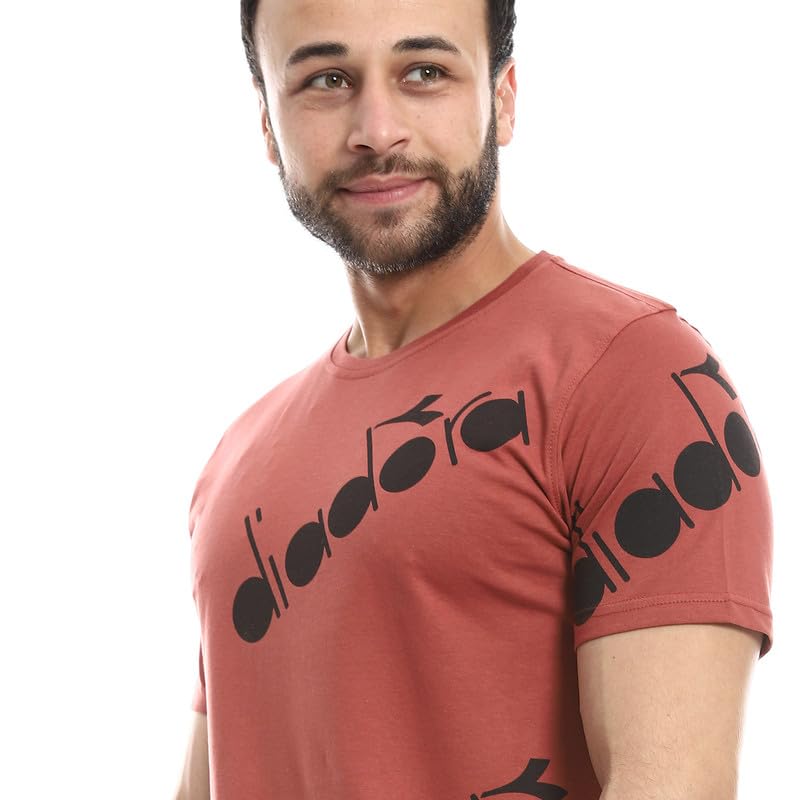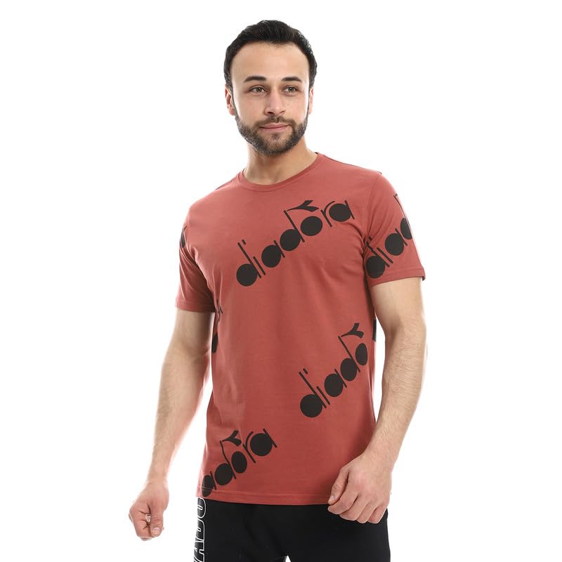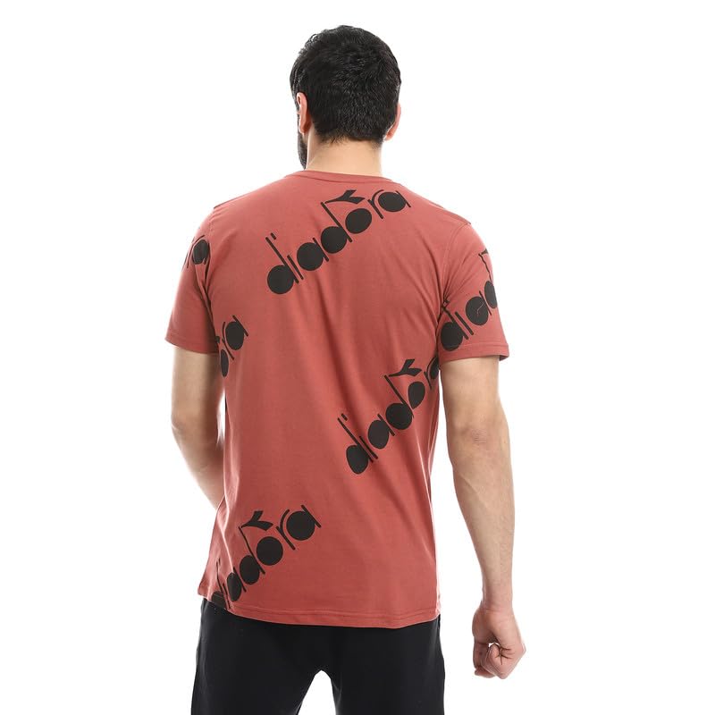 Diadora - تيشرت قطن مطبوع للرجال مقاس XXL لون بورجندي