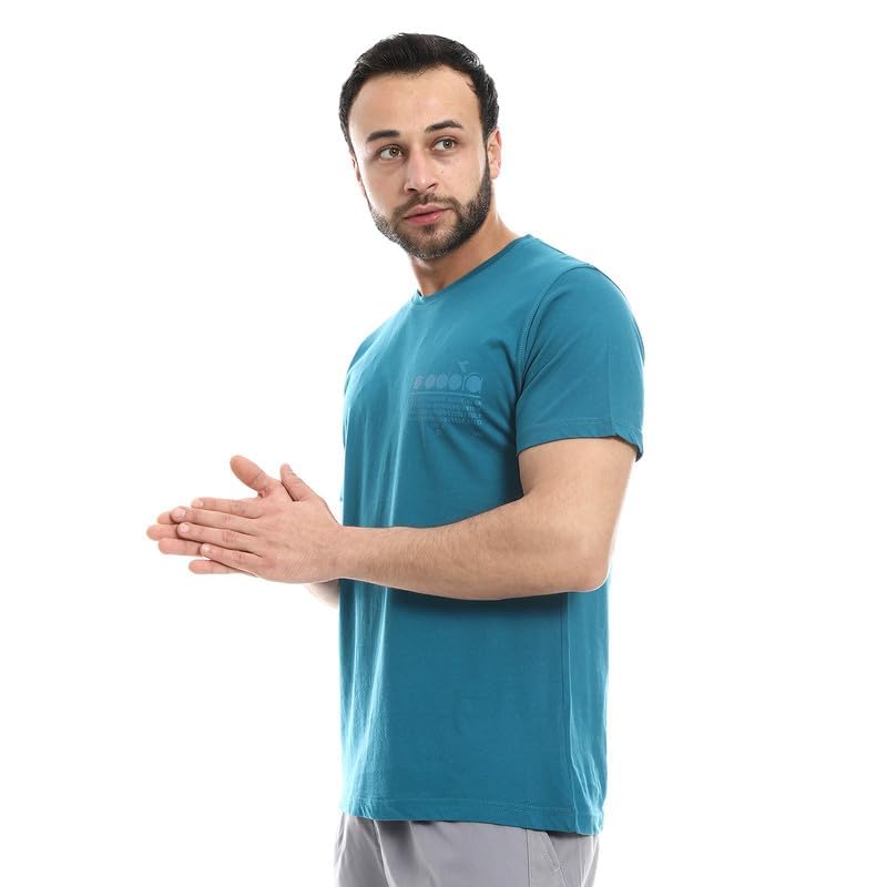 Diadora - تيشرت قطني مطبوع للرجال من ديادورا، مقاس اكس اكس اكس لارج، لون بترولي