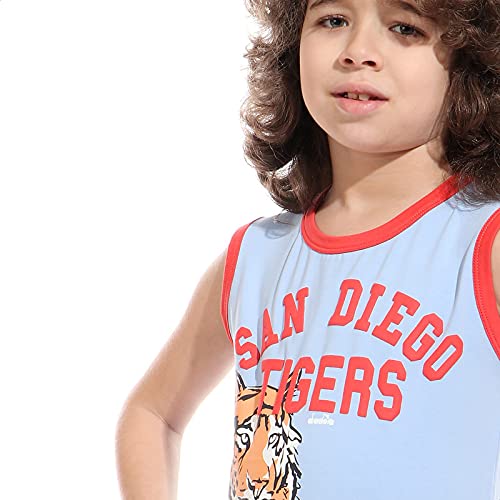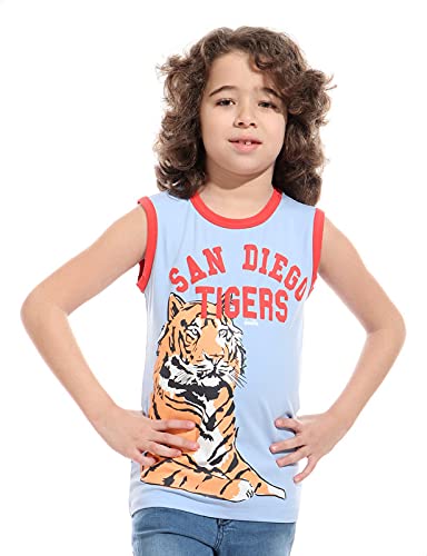 Diadora - تيشيرت بدون اكمام مطبوع برقبة دائرية واطراف مختلفة اللون الأولاد من ديادورا