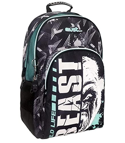 Diakakis - شنطة ظهر ماست انيرجي مطبوع عليها كلمة BEAST ومزودة بعدد 3 مساحات تخزين، مقاس 33×16×45 سم، أسود