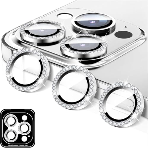 Generic - واقي عدسة الكاميرا الماسي لموبايل ايفون 16 برو/ايفون 16 برو ماكس، ستيكر لاصق لعدسة الكاميرا المتلألئة، غطاء شاشة من الزجاج المقوى، حلقات معدنية بمحاذاة تلقائية فردية لتزيين الموبايل