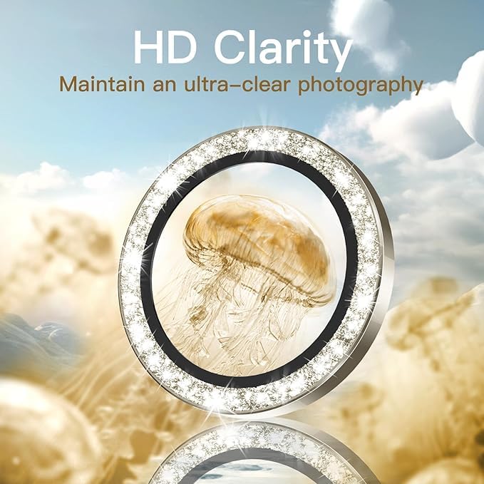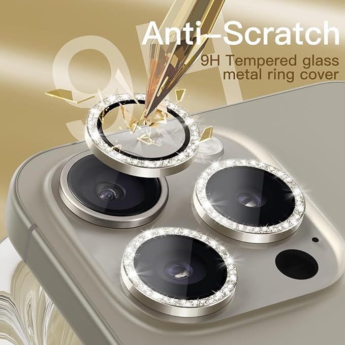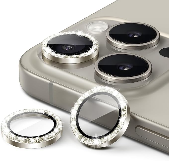Generic - واقي عدسة الكاميرا الماسي لموبايل ايفون 16 برو ماكس/ 16 برو، غطاء حلقي فردي من الزجاج المقوى بدرجة صلابة 9، شفاف HD، لون التيتانيوم الطبيعي
