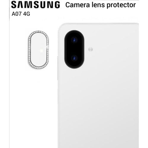 Generic - واقي عدسة كاميرا بتصميم ماسي مضاد للخدش من اكسسوارات موبايل سامسونج جالاكسي A07 شبكة الجيل الخامس 5G وجراب حماية معدني بحلقة فردية من الزجاج المقوى بدرجة صلابة 9 ومضاد للخدش لون أسود
