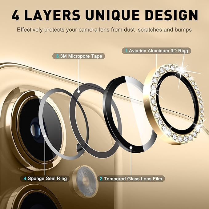 - 【تصميم لامع】تتميز واقيات العدسات هذه ببريق يشبه الماس يبهر في أي ضوء. يجسد مزيج الملمس المعدني اللامع والنمط الرائع الجمع بين التكنولوجيا والأزياء، مما يضمن تميز موبايلك بين أي حشد. مع 8 ألوان كلاسيكية، يمكنك اختيار نفس لون هاتفك أو تجربة تركيبات مختلفة لتزيين هاتفك.
