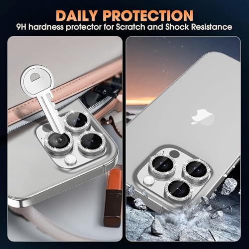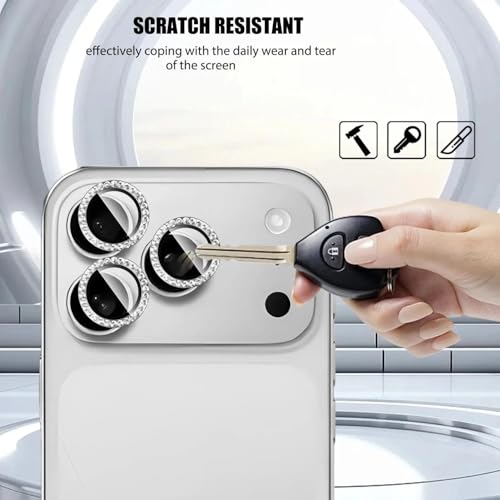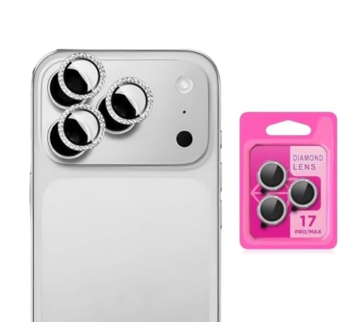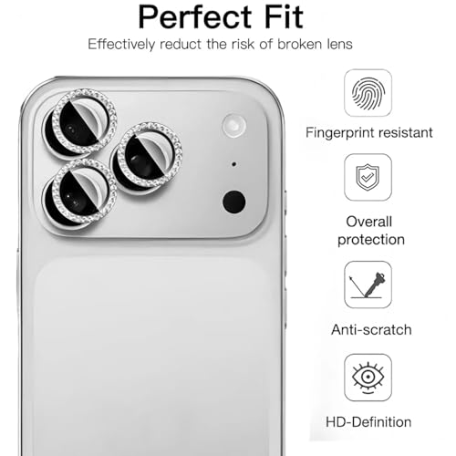 Generic - واقي عدسة الكاميرا بتصميم ماسي لموبايل آيفون 17 برو/ آيفون 17 برو ماكس، غطاء عدسة شفاف عالي الدقة من الزجاج المقوى بحلقة معدنية فردية مع امتصاص قوي بتصميم رفيع جدا (فضي)