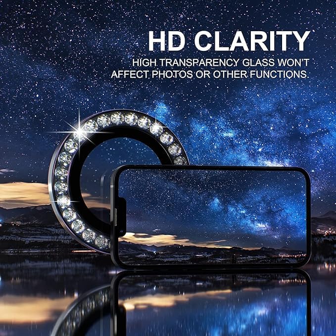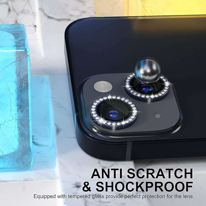 Generic - عدسات حماية كاميرة الماس لهاتف Apple Iphone 14/ 14 Plus / 15 / 15 Plus - اسود الماس