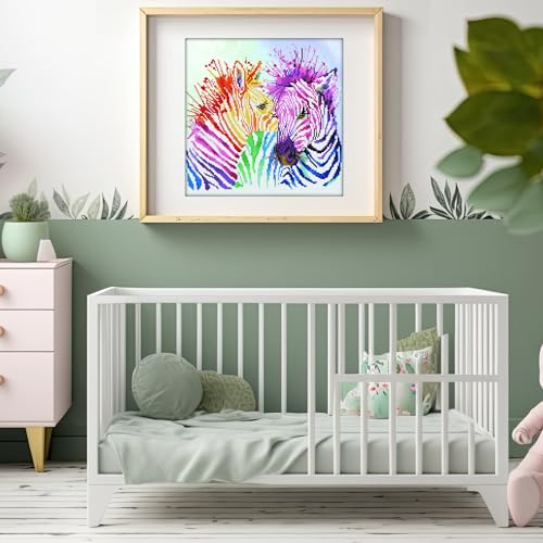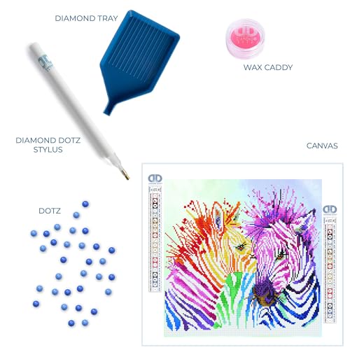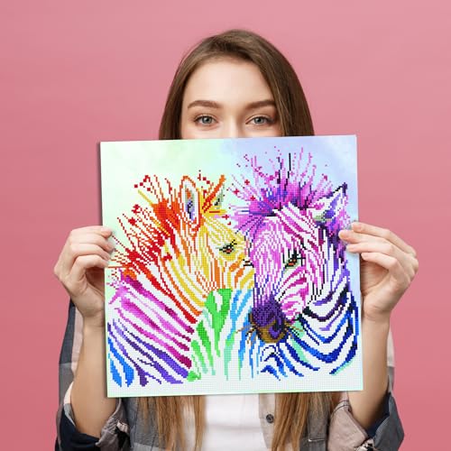 DIAMOND DOTZ - مجموعة رسم بالألماس من دايموند دوتز، بتصميم حمير وحشية بألوان قوس قزح - 40×40 سم، DD8.005