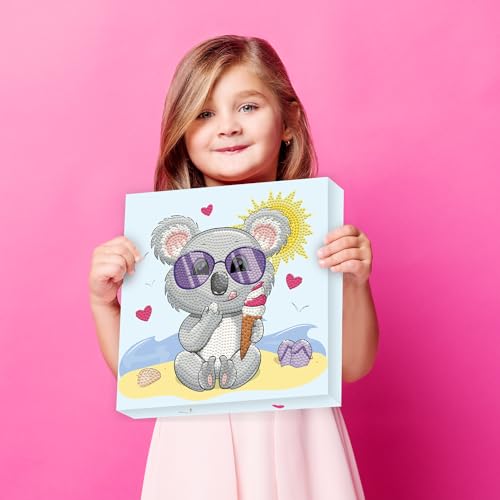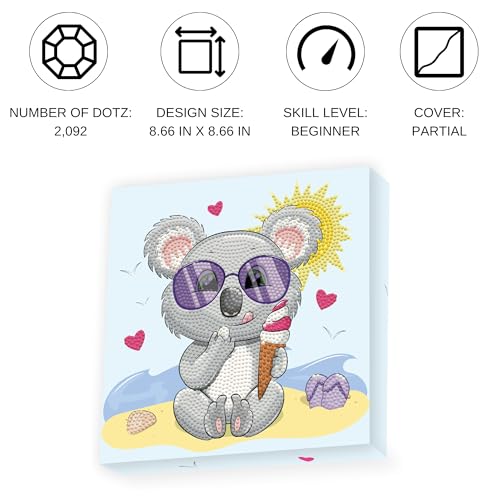 DIAMOND DOTZ - مجموعة لوحة دوتز ماسية فنية 22 سم × 22 سم - تصميم حيوان كوالا يتناول الآيس كريم - DBX040 من دايموند