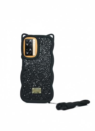 ELMO3EZZ - حافظة لامعة بتصميم ماسي لموبايل اوبو A77s، حافظة فاخرة من السيليكون الناعم المموج (لون اسود)