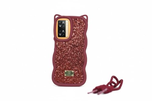 ELMO3EZZ - جراب لامع بتصميم ماسي لموبايل أوبو A77s، تصميم من السيليكون الناعم المموج والكريستال (أحمر غامق)