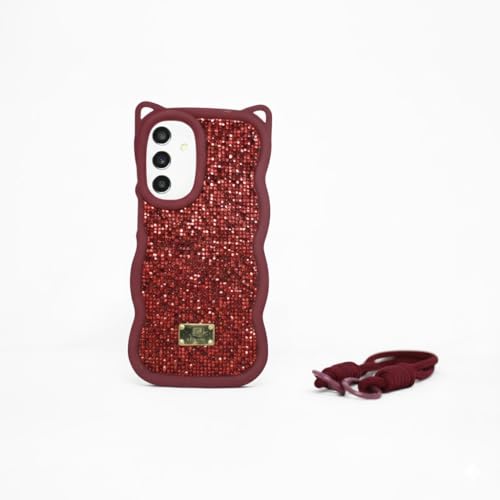 ELMO3EZZ - حافظة لامعة بتصميم ماسي لسامسونج A26، حافظة فاخرة من السيليكون الناعم المموج (احمر نبيذي)