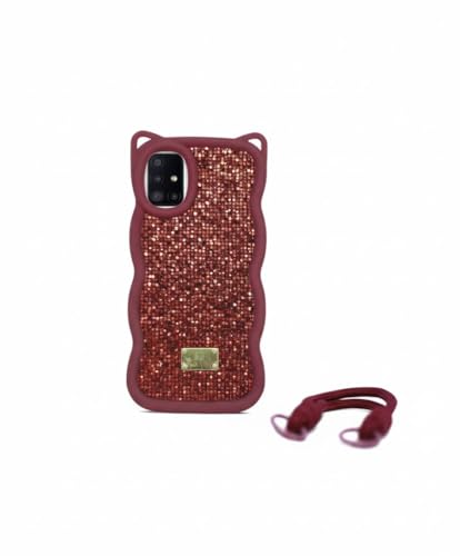 ELMO3EZZ - حافظة لامعة بتصميم ماسي لموبايل سامسونج A51، حافظة فاخرة من السيليكون الناعم المموج (احمر نبيذي)