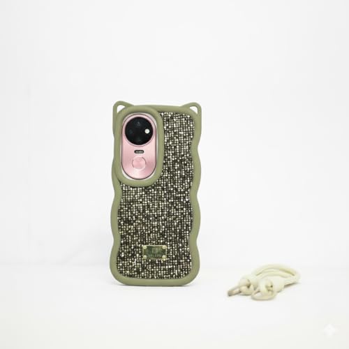 ELMO3EZZ - جراب جليتر ماسي لموبايل فيفو V50، جراب فاخر من السيليكون الناعم المموج والكريستال (بني فاتح)