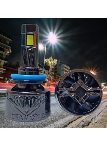 Generic - لمبة فانوس أمامي - موديل H11، بقدرة 150 واط، وفولتية 12-24 فولت، بقوة إضاءة هائلة 120,000 لومين، لون أبيض فائق السطوع (5200-6000 كلفن)، مزودة بمروحة تبريد من دايموند