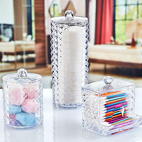 - أحجام متعددة من 3 أقسام: يمكنكِ تنظيم جميع مكياجك واكسسواراتك في حاويات مبهرة، العلب هي منظم مثالي لتخزين المسحات القطنية والكرات القطنية الدائرية واكسسوارات الشعر. برطمان تخزين مربع لخيوط ومنظف الأسنان وما إلى ذلك.