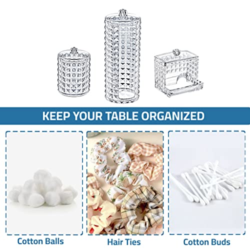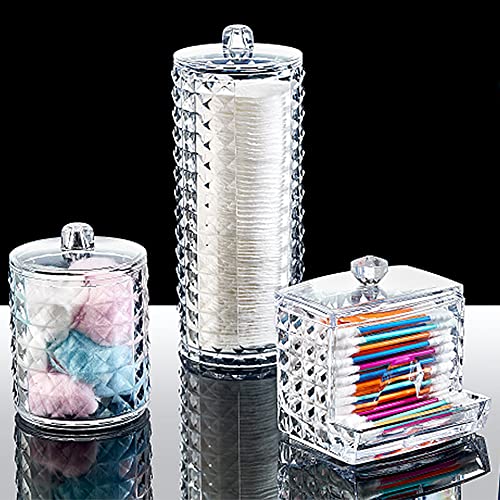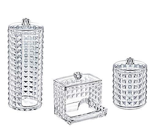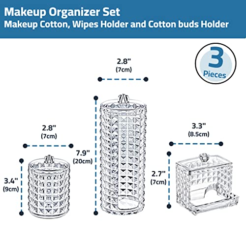 Generic - مجموعة منظم مكياج من 3 قطع، حامل مناديل قطنية للمكياج، حامل أعواد قطنية، منظم قرطاسية اكريليك متعدد الأغراض لسطح المكتب، لوازم فنية للمنزل والمكتب من دايموند