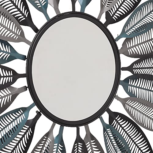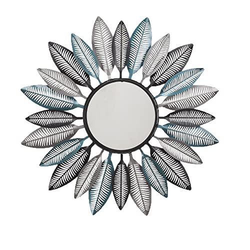 Diamond - مرايات بتصميم الماس مع اطار معدني دائري واوراق بلون بني وبترولي واسود