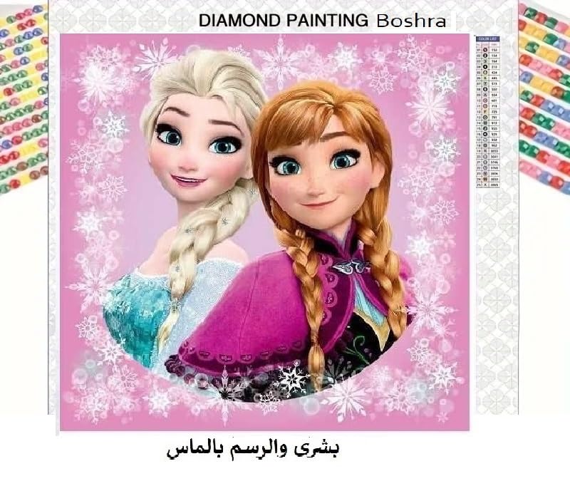 Generic - لوحة دايموند بينتج بوشرا بتصميم فروزن مع خرز ماسي للتثبيت لديكور الحائط 45 × 45 سم بشكل دائري غير مؤطر، قطعة فنية يدوية لتزيين الحائط