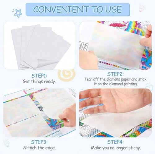 - ورق تغطية واقي: مجموعة من 20 ورقة واقية مقاومة للغبار مصممة خصيصًا لمشاريع الرسم الماسي للحفاظ على القماش نظيفًا ولاصقًا جديدًا بين جلسات العمل